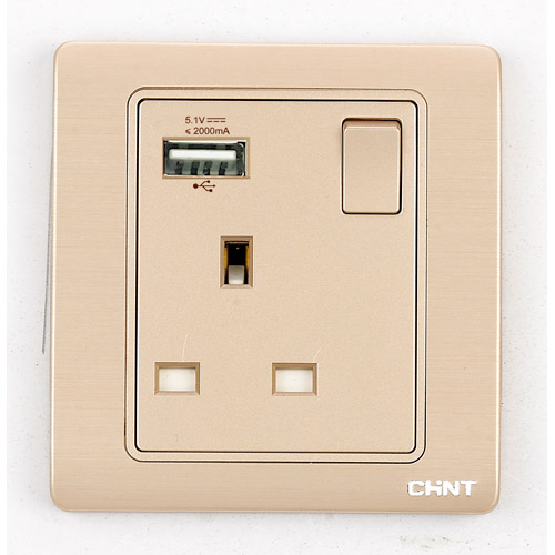 13A 250V 1 gang 3 pin socket outlet with 2.0A 5V USB